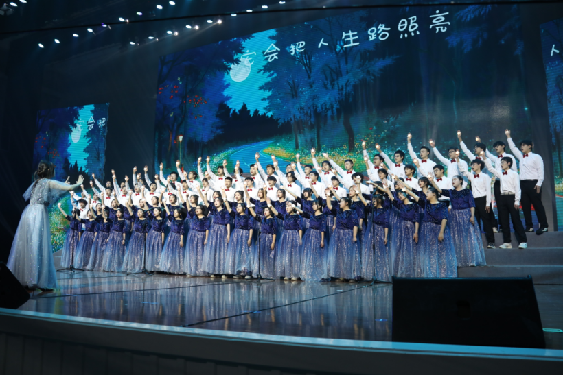 歌会紧扣“青春心向党 奋进新征程”主题,来自6个二级学院以及川信之声合唱团的近800名青年学生齐聚一堂,在激昂旋律中重温峥嵘岁月,在深情吟唱中凝聚奋进力量。