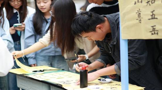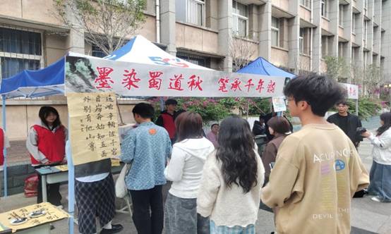 活动现场气氛热烈,参与学生络绎不绝。墨香弥漫中,笑语不断,三大体验区各具特色,共同勾勒出一幅生动而立体的蜀道文化画卷。在书法区,同学们凝神静气,提笔临摹“蜀道难”等千古名句,笔锋流转间仿佛与古人展开一场跨越时空的对话。