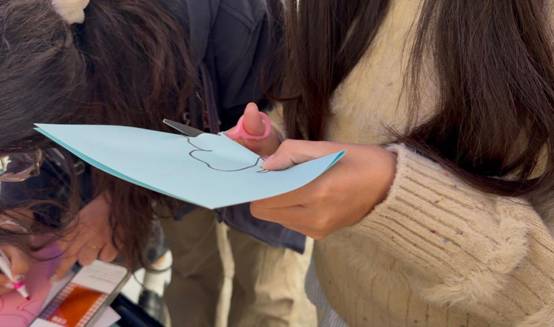 剪纸区同样引人入胜。在志愿者的悉心指导下,一张张彩纸在学生手中化作蜿蜒的蜀道栈道与连绵的巴山蜀水,传统技艺与蜀道意象巧妙结合。