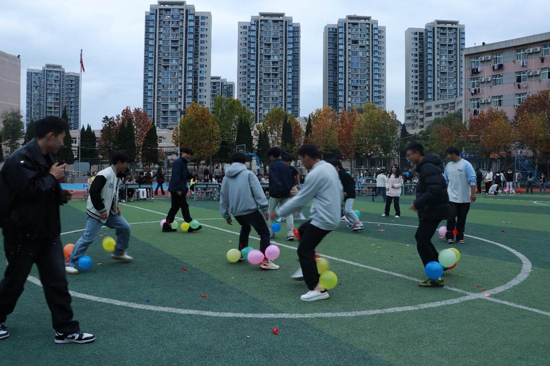 “十人十一足”竞速比赛中,各支队伍步伐整齐划一,口号声响彻操场。趣味盎然的“踩气球大战”将活动推向高潮,参赛者既要保护己方气球又要精准击破对手目标,现场加油助威声此起彼伏。压轴登场的“听歌识曲”挑战赛更是考验综合素养,从流行金曲到经典红歌,选手们的快速反应赢得阵阵掌声。