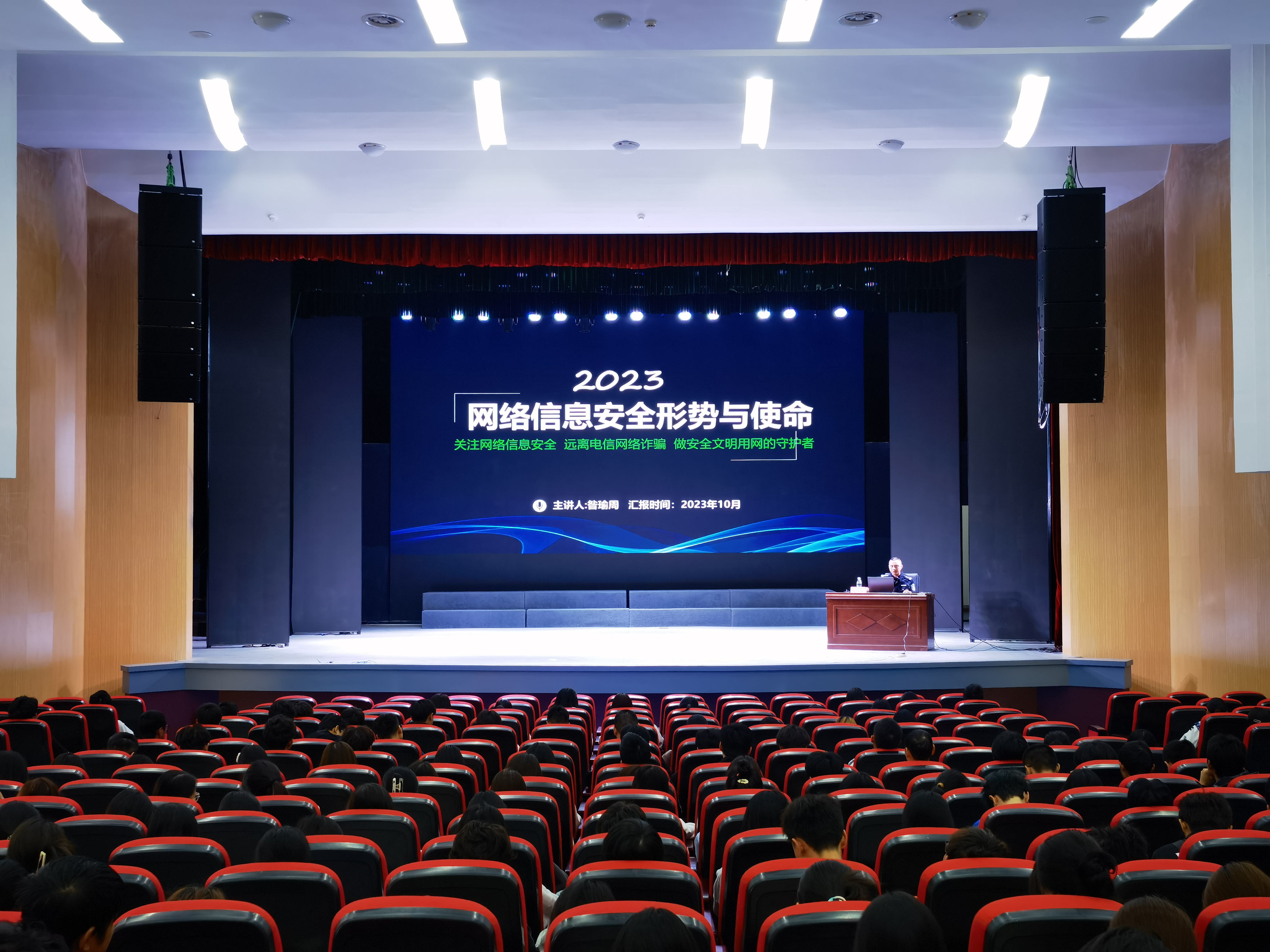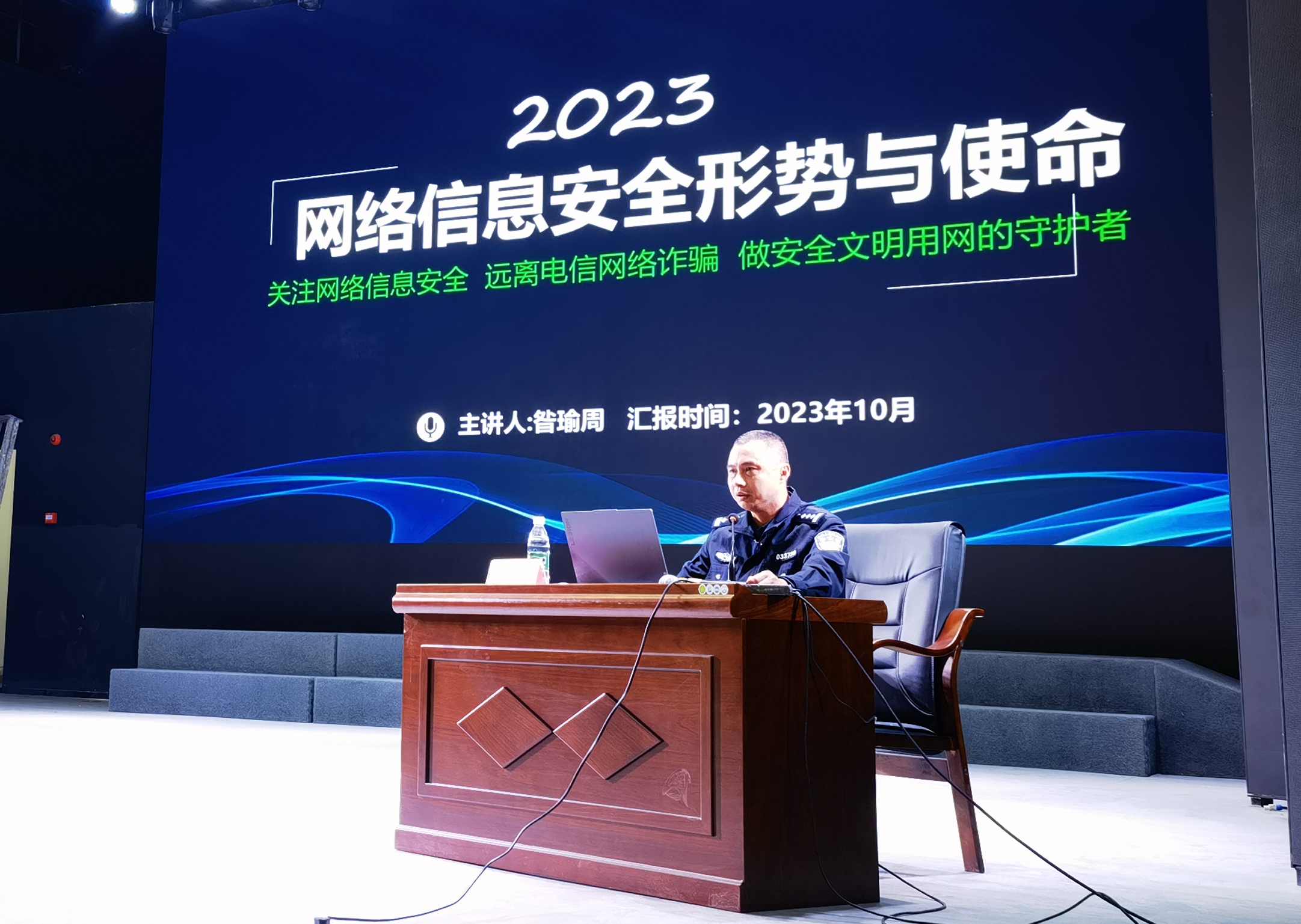 讲座中,昝瑜周警官围绕当前网络安全空间面临的风险和挑战、常见相关网络安全法律条款解读、青少年网络安全倡议等方面,通过生动的案例对目前的网络安全严峻态势和在校大学生面临的网络安全风险进行了详细分析阐述。他告诫大家,作为新时代的大学生,要深入学习贯彻习近平总书记关于网络强国的重要思想,不断提升网络安全意识和防护技能,养成良好的用网习惯,为打造安全、稳定的校园网络环境贡献力量。
